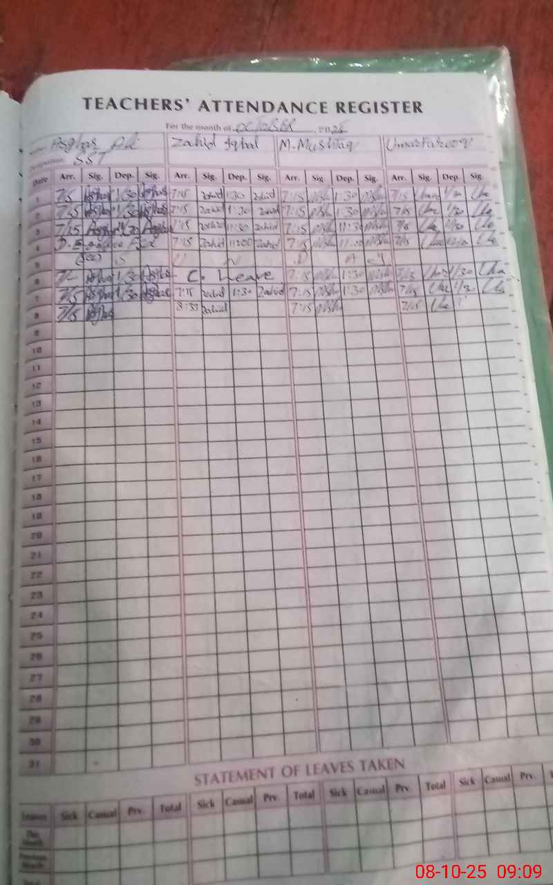 | Name: AS**** AL**** Designation: (School Headmaster's/Headmistress's) SST (GENERAL) Phone/Cell Number: 03**** |