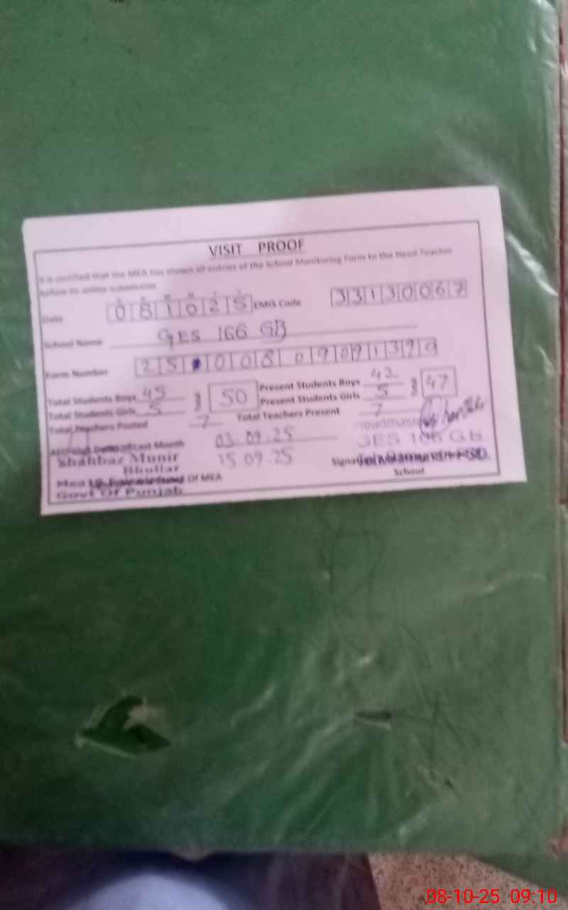 | EMIS Code: 33130067 | Name of School: GES CHAK 166 GB | |||
