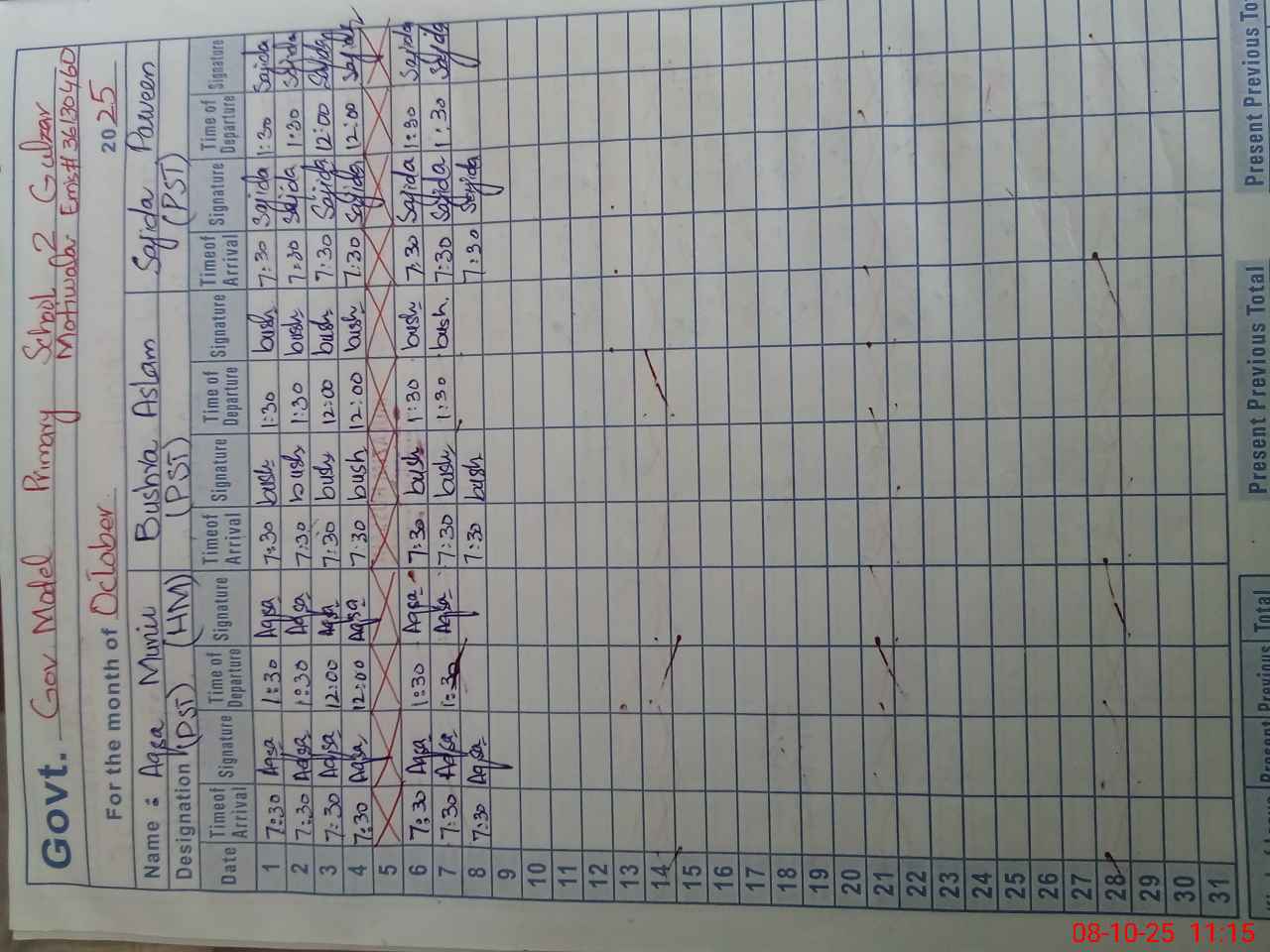 | CNIC | Full Name | Designation | R/C | Absence During Last Calender Month |