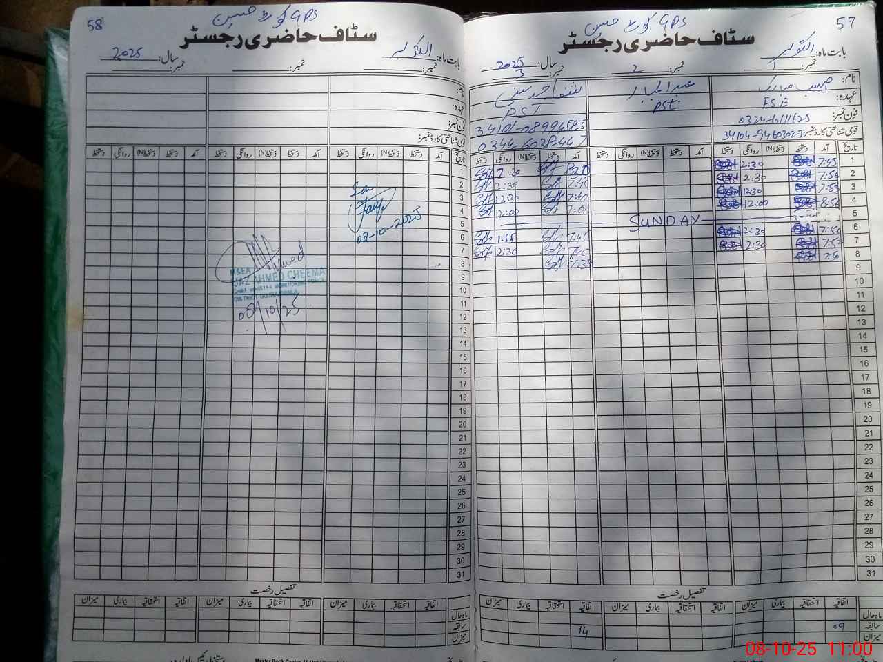 | CNIC | Full Name | Designation | R/C | Absence during last cal. month |