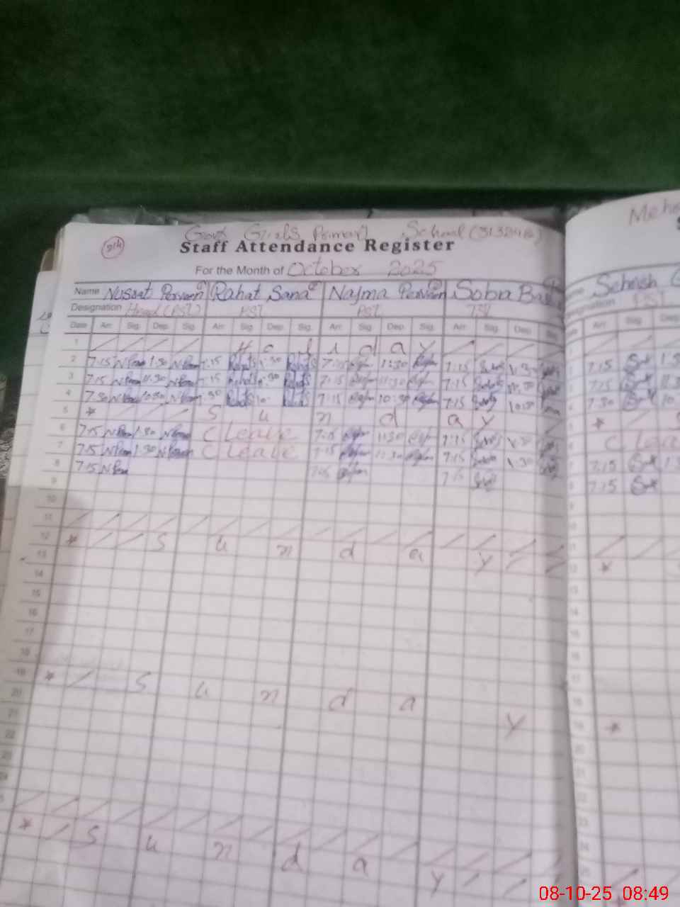 | Monitoring Date: 08-10-2025 | Start Time: 08-10-2025 08:20 AM | End Time: 08-10-2025 08:58 AM | Name of MEA: Mu**** Sa**** Ul**** Sa**** | |