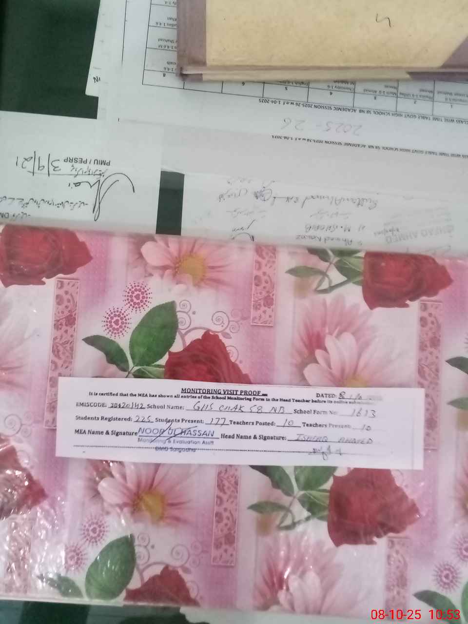 | Certified that this School was Inspected by the Undersigned MEA/DMO Today and the Information Stated Above is as Per Record. | |||||