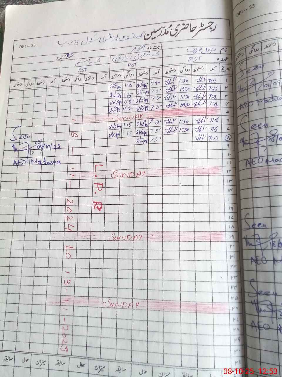 | CNIC | Full Name | Designation | R/C | Absence During Last Calender Month |