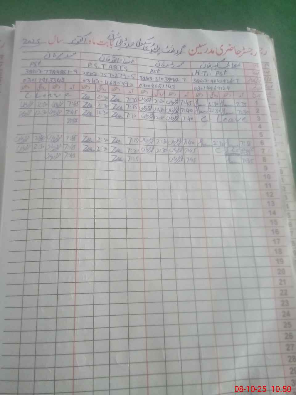 | Name: AB**** HA**** KH**** Designation: (School Headmaster's/Headmistress's) PTC/JV Phone/Cell Number: 03**** |