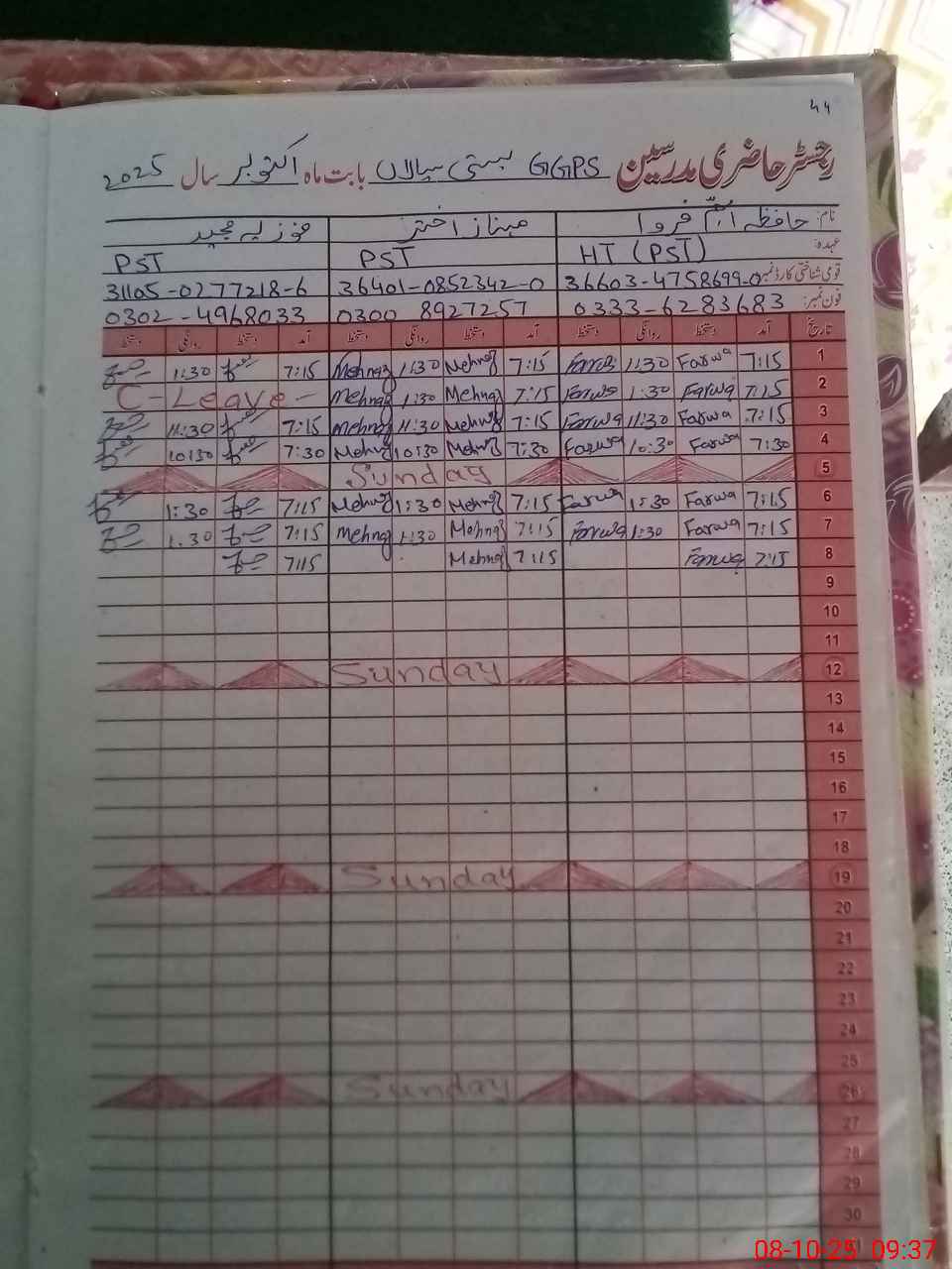 | Name: Ha**** Um**** Fa**** Designation: (School Headmaster's/Headmistress's) PST Phone/Cell Number: 03**** |