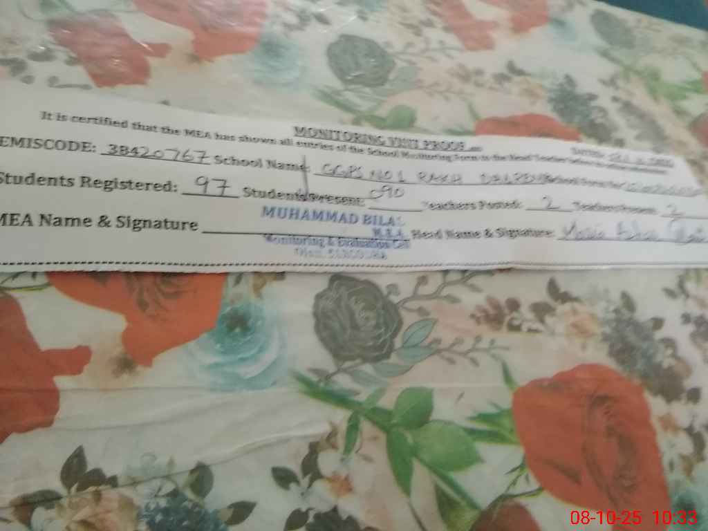 | EMIS Code: 38420767 | Name of School: GGPS CHAK NO.1 RAKH DHAREMA | |||