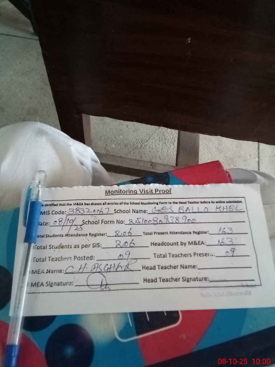 | EMIS Code: 38320067 | Name of School: GES BALLO KHEL | |||