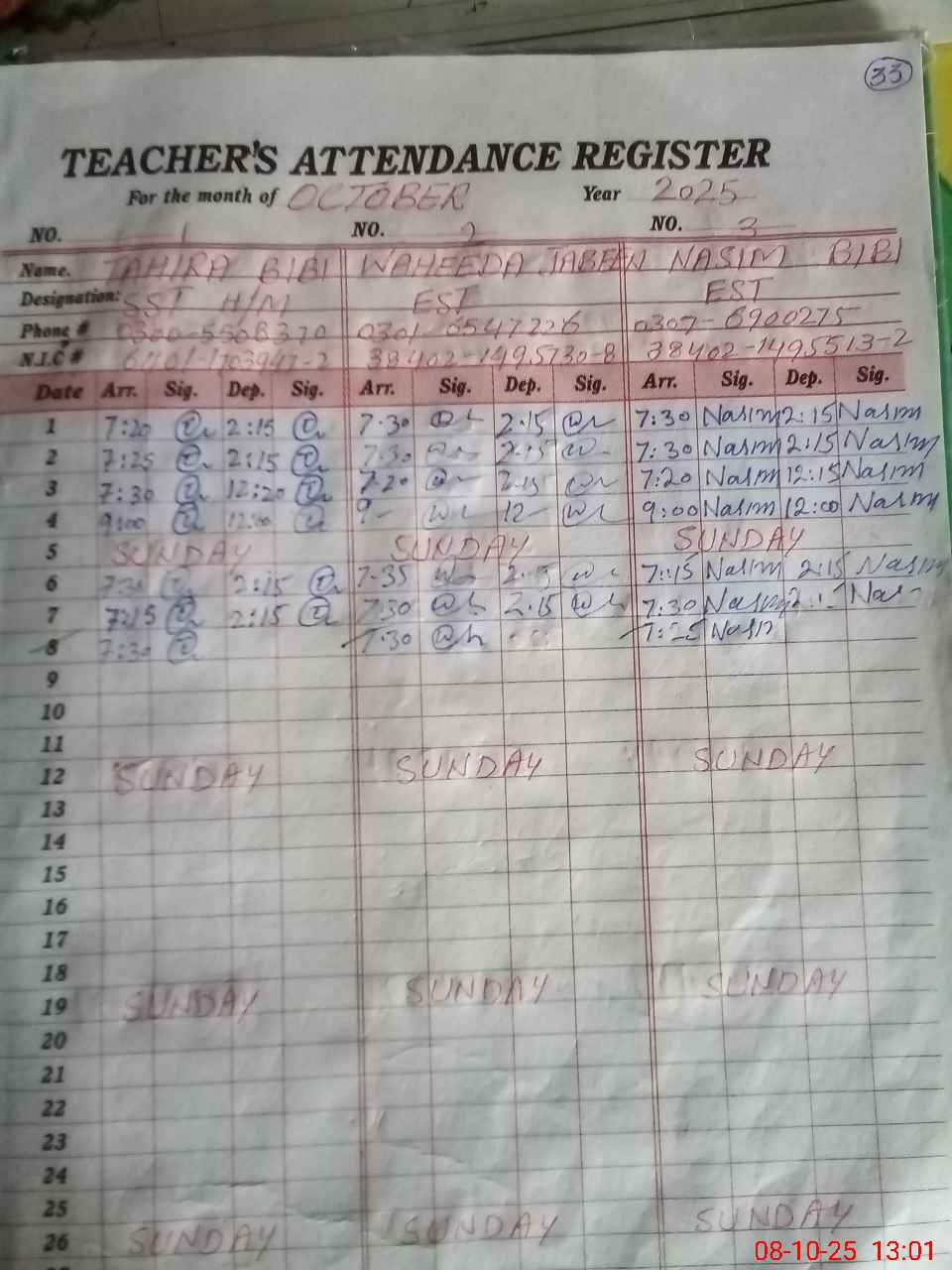 | Name: TA**** BI**** Designation: (School Headmaster's/Headmistress's) SST SCINCE Phone/Cell Number: 03**** |