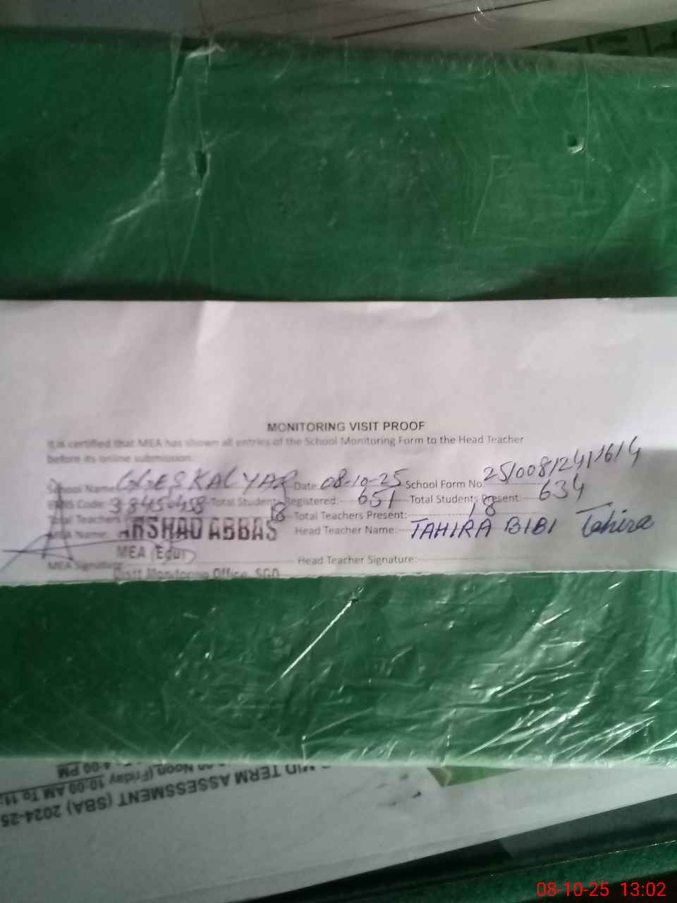 | Attendance Register | Head Teacher | MEA with School | Visit Proof |