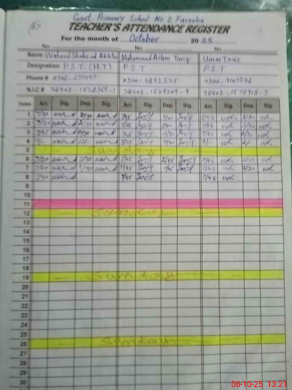 | Name: WA**** SH**** Designation: (School Headmaster's/Headmistress's) PST Phone/Cell Number: 03**** |