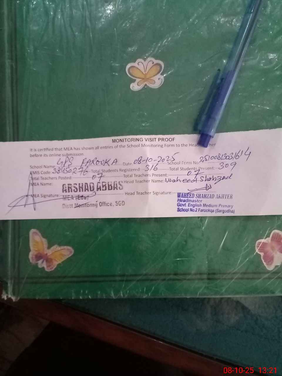| EMIS Code: 38450276 | Name of School: GPS FAROOKA | |||