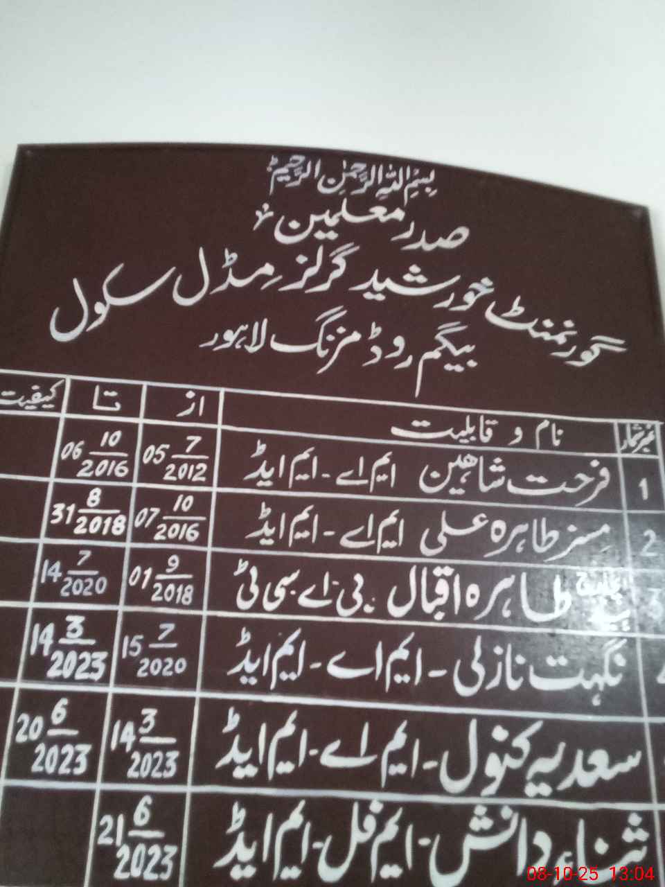 | District: LAHORE | Tehsil: CITY | Markaz: NIAZBAIG - FEMALE | Level: Middle | |