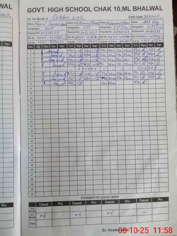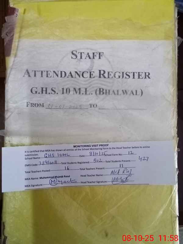 | EMIS Code: 38410011 | Name of School: GHS CHAK NO.10 ML | |||