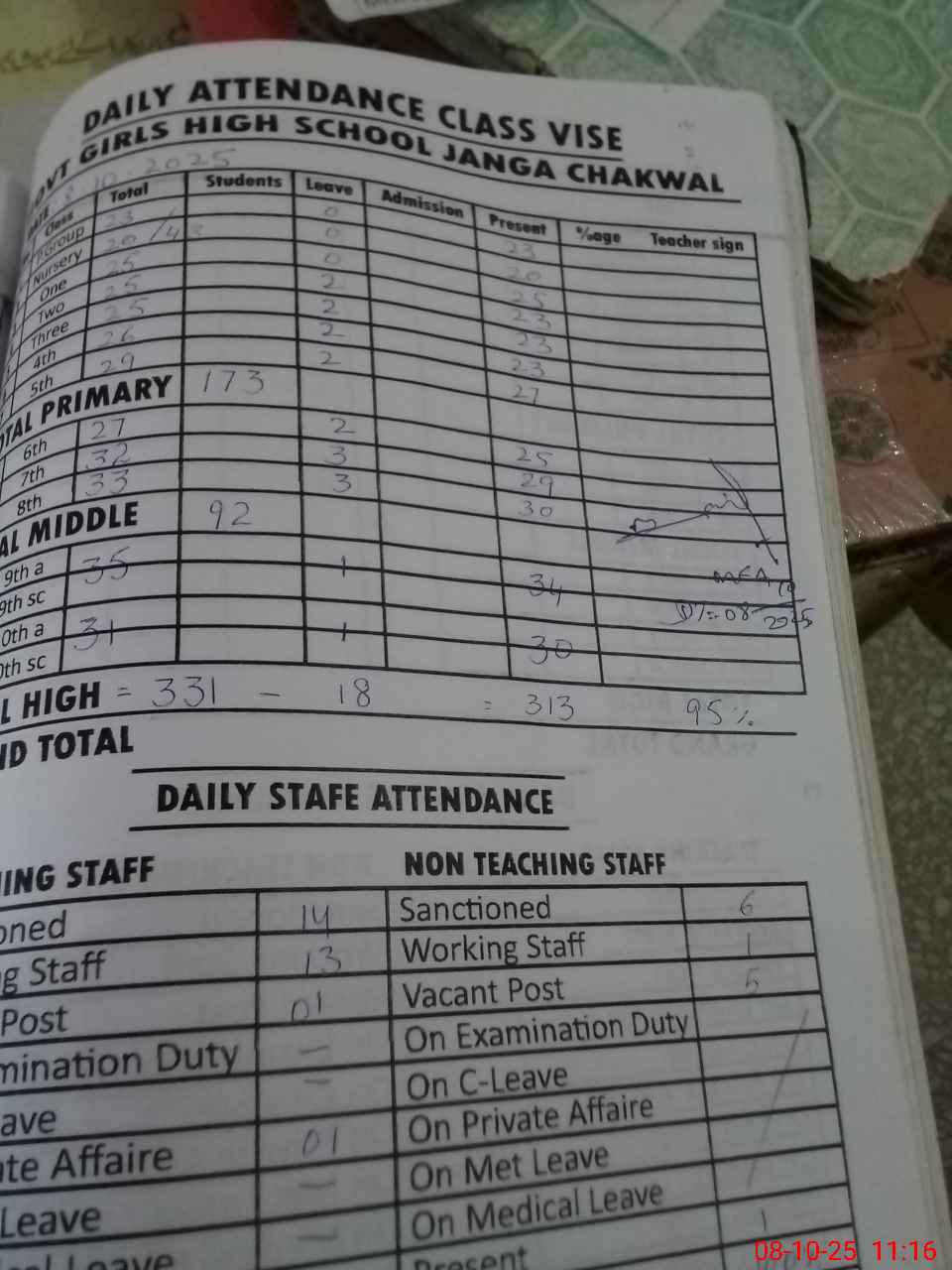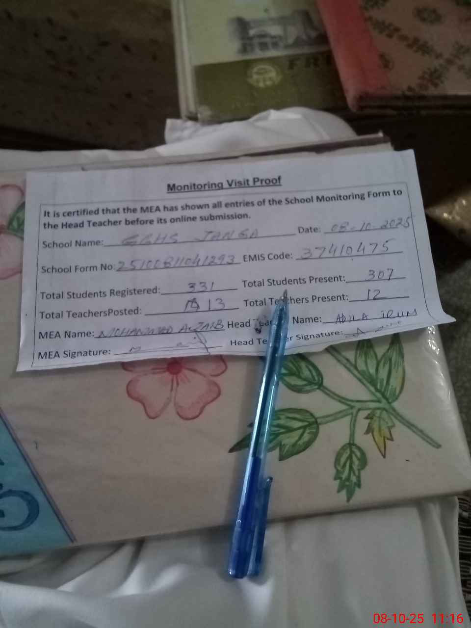 | Certified that this School was Inspected by the Undersigned MEA/DMO Today and the Information Stated Above is as Per Record. | |||||