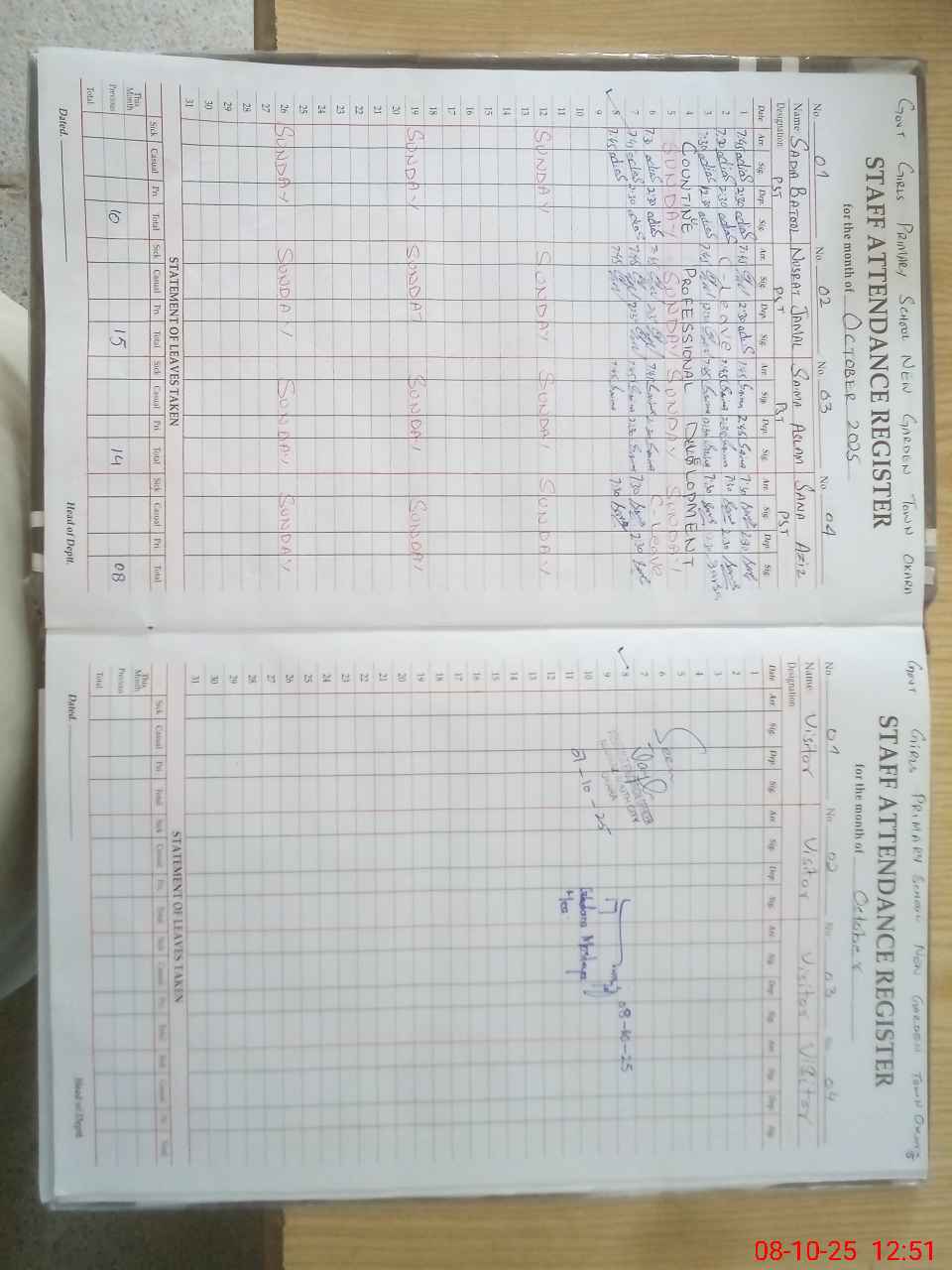 | Leave | Duty | Absent | Maternity | Medical | Ex- Pak |