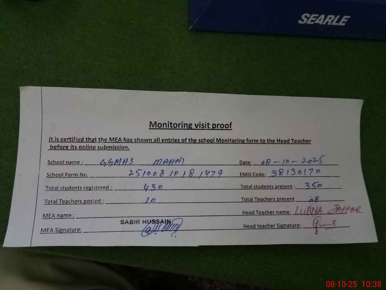 | EMIS Code: 38130170 | Name of School: GGMHS MAHNI | |||