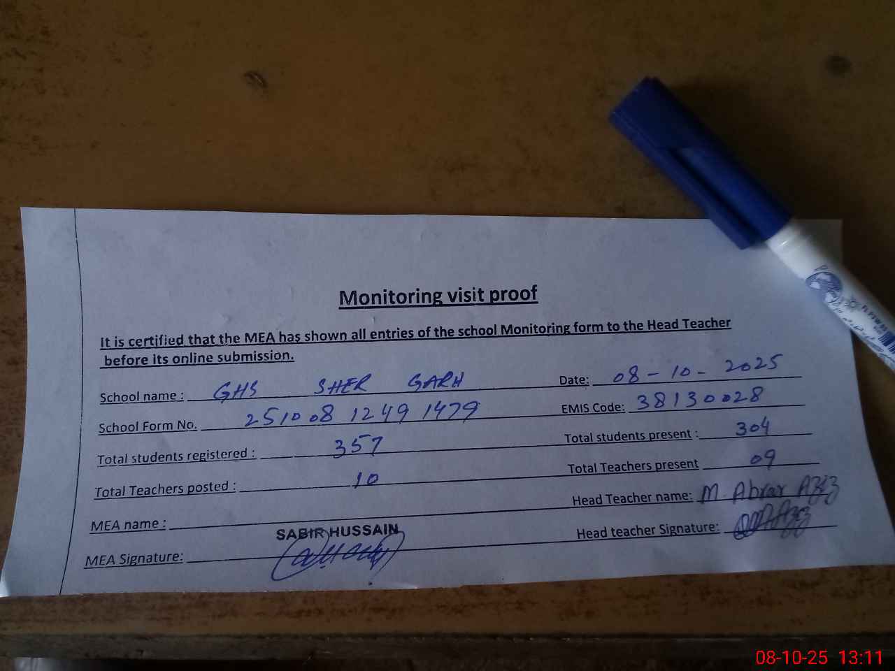 | EMIS Code: 38130028 | Name of School: GHS SHER GARH | |||