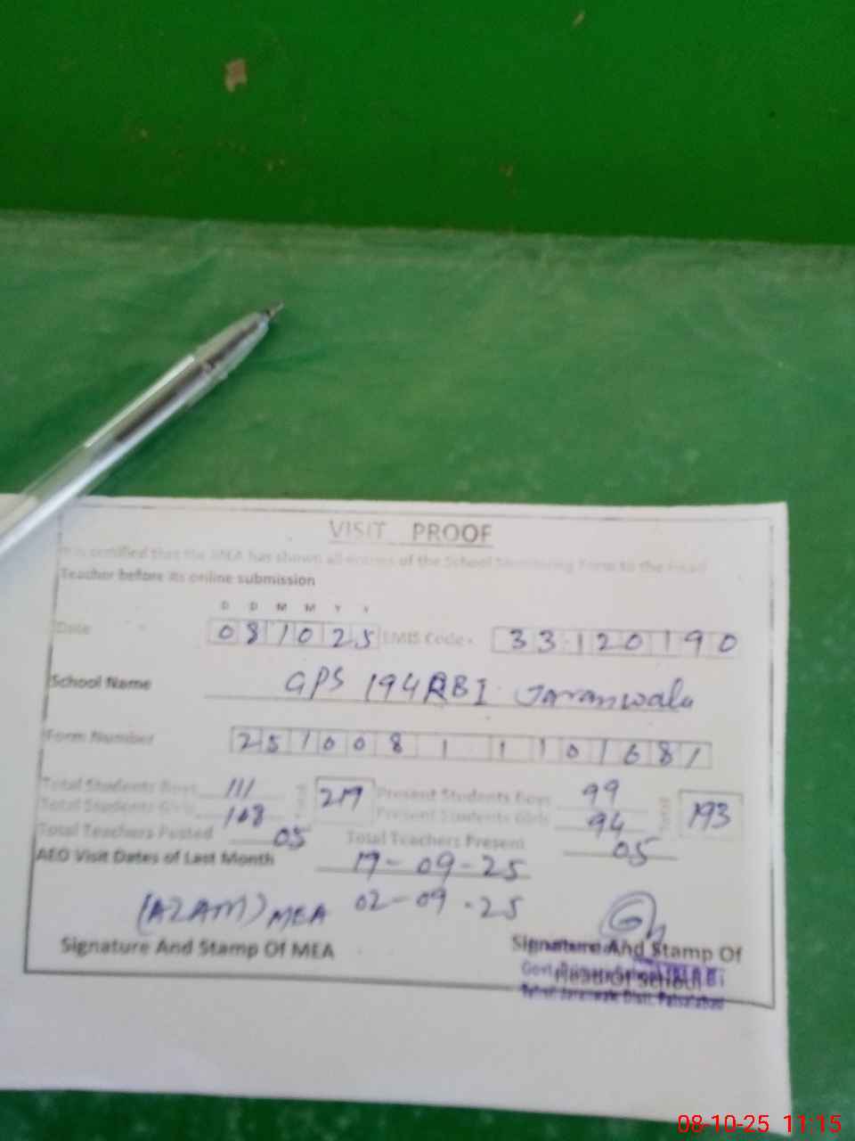 | EMIS Code: 33120190 | Name of School: GPS CHAK 194 RB I | |||
