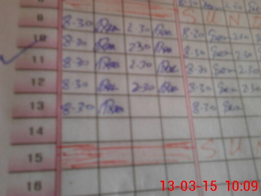 | Monitoring Date: 13-03-2015 | Start Time: 13-03-2015 09:54 AM | End Time: 13-03-2015 10:13 AM | Name of MEA: Z.**** M.Is**** | |