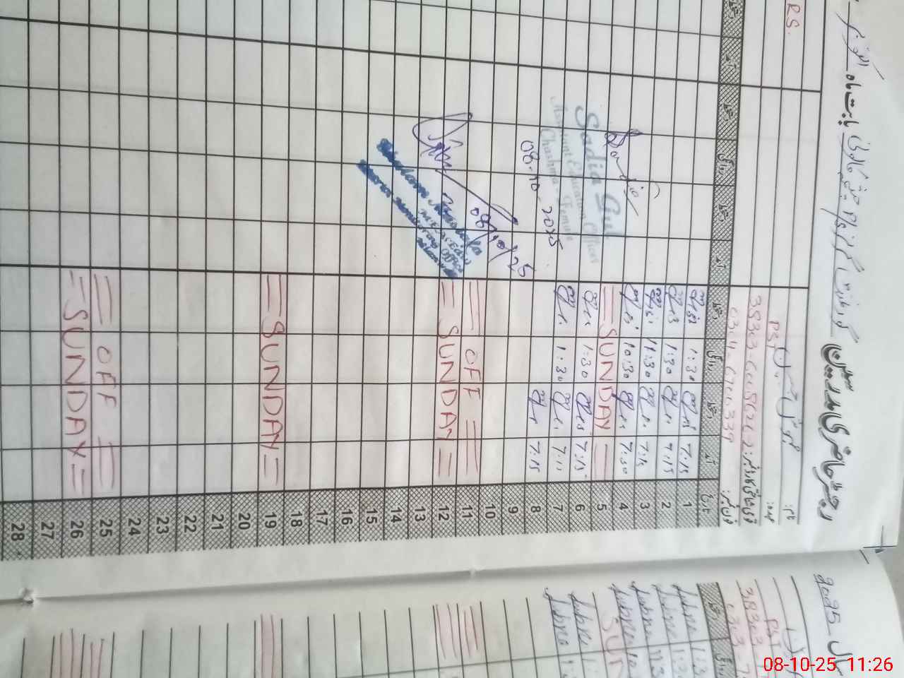 | CNIC | Full Name | Designation | R/C | Absence During Last Calender Month |