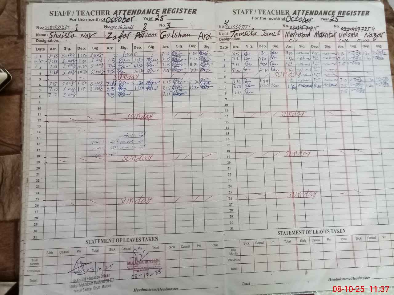 | Name: SH**** NA**** Designation: (School Headmaster's/Headmistress's) PST Phone/Cell Number: 03**** |