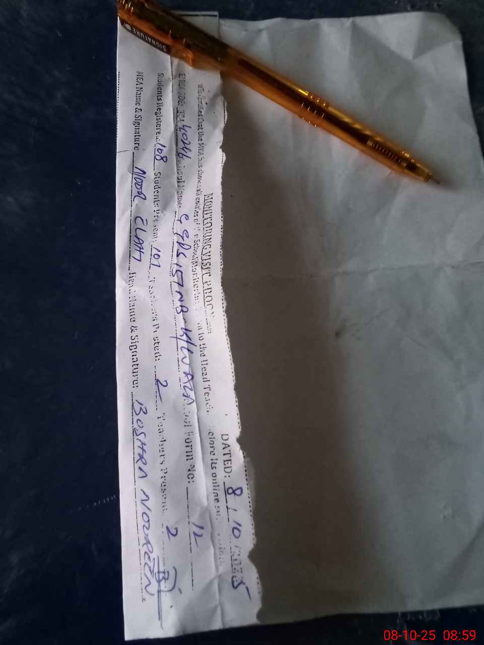 | Monitoring Date: 08-10-2025 | Start Time: 08-10-2025 08:38 AM | End Time: 08-10-2025 09:01 AM | Name of MEA: NO**** EL**** | |