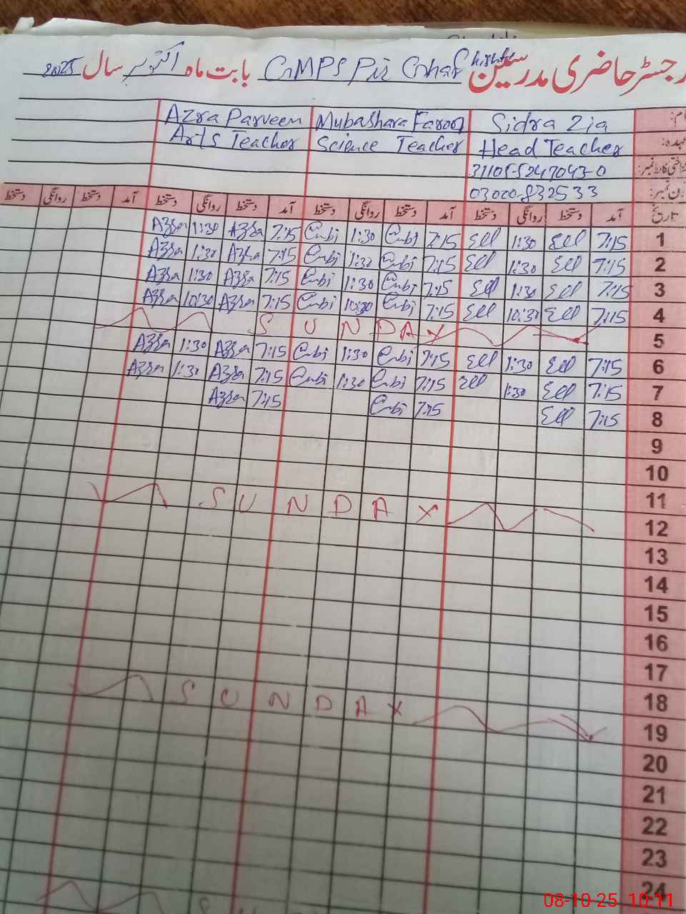 | Name: Si**** Zi**** Designation: (School Headmaster's/Headmistress's) ESE Arts Phone/Cell Number: 03**** |