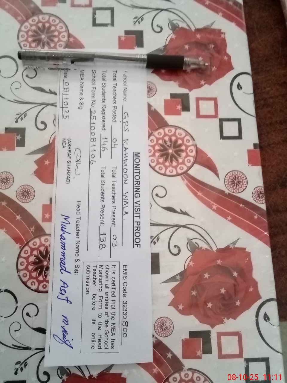 | EMIS Code: 32330800 | Name of School: GPS RAHMOON WALA | |||