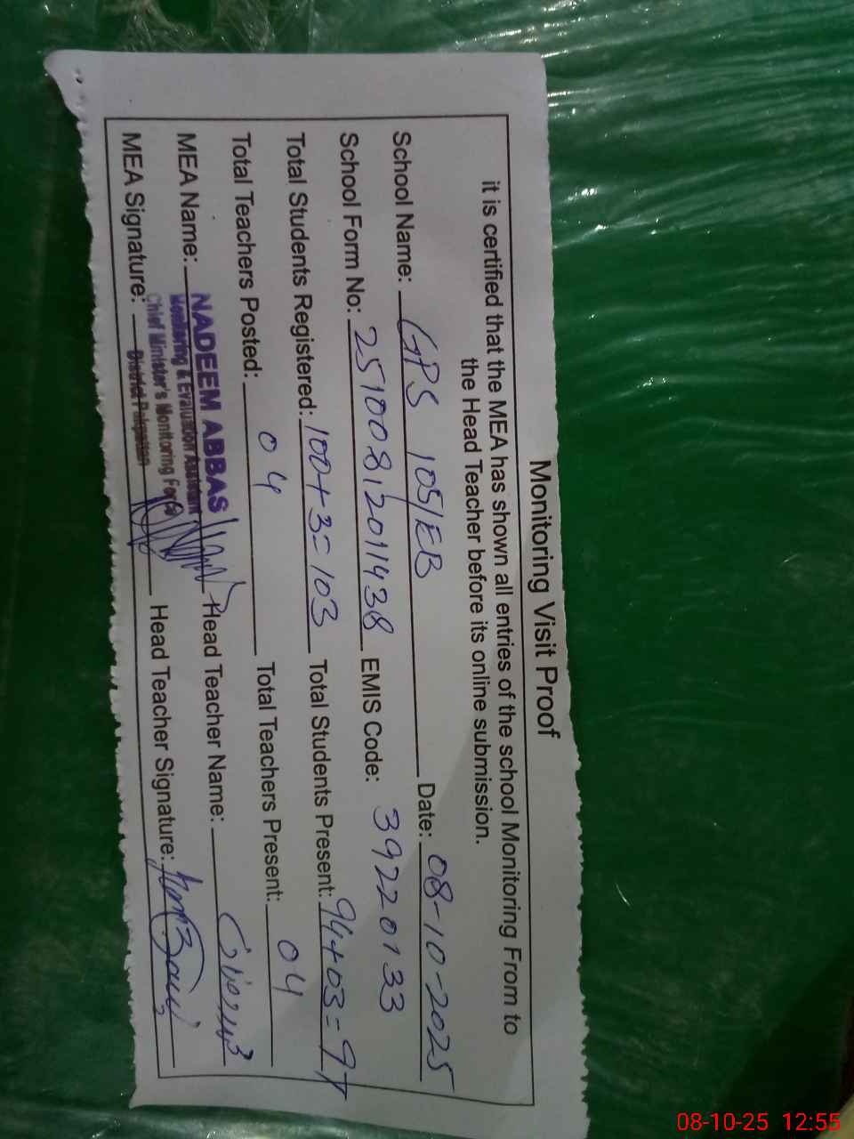 | EMIS Code: 39220133 | Name of School: GPS 105 EB ARIFWALA | |||