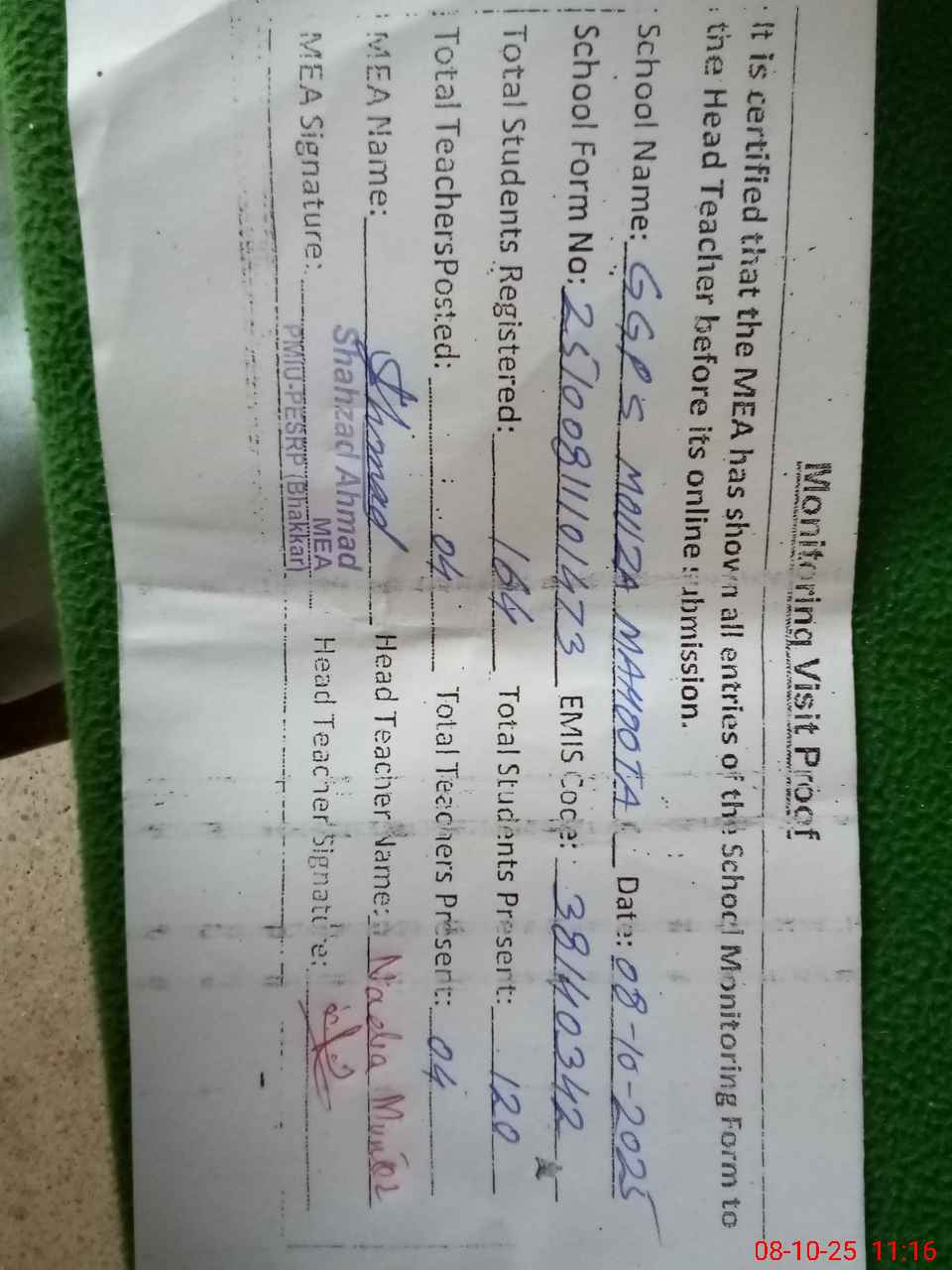 | EMIS Code: 38140342 | Name of School: GGPS MOUZA MAHOOTA | |||