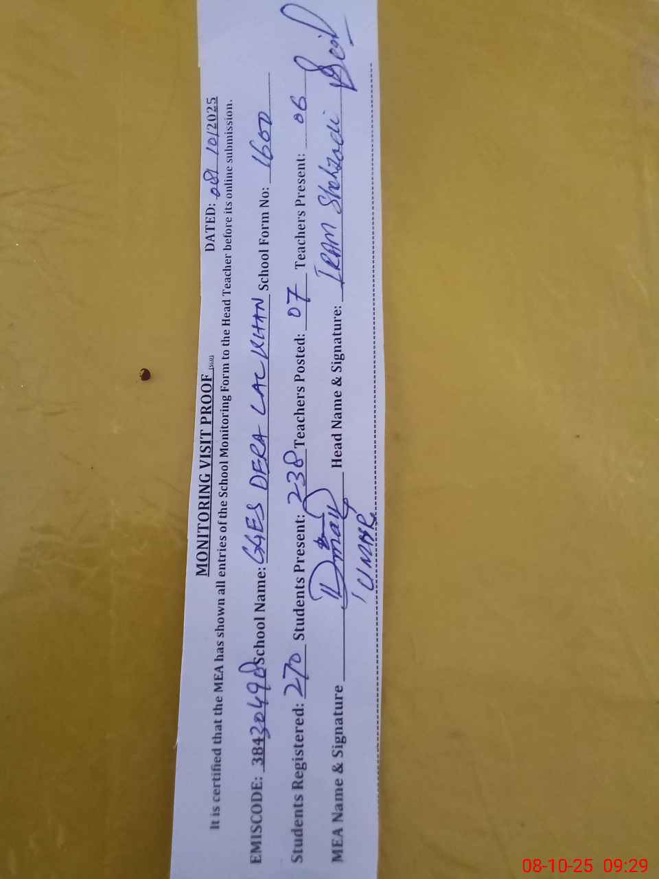 | EMIS Code: 38430498 | Name of School: GGES DERA LAL KHAN SHAHPUR | |||