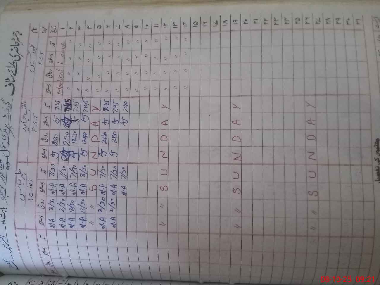 | CNIC | Full Name | Designation | R/C | Absence During Last Calender Month |