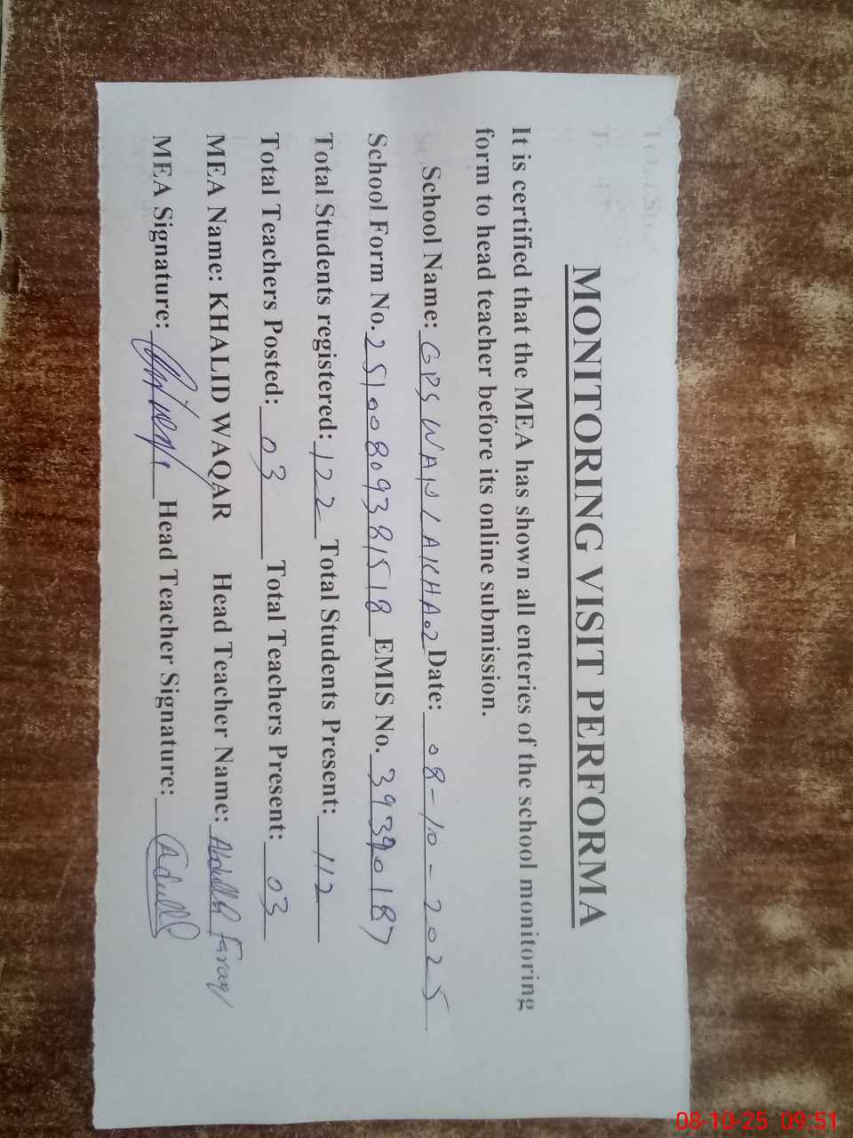 | EMIS Code: 39320187 | Name of School: GPS WAN LAKHA NO 2 | |||