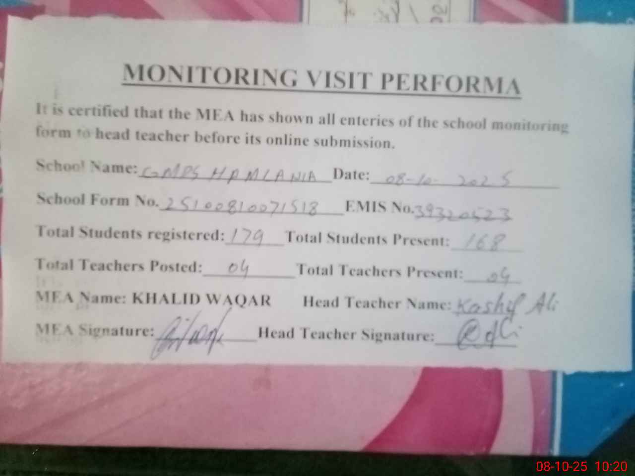 | EMIS Code: 39320523 | Name of School: GMPS HAMLANIA | |||