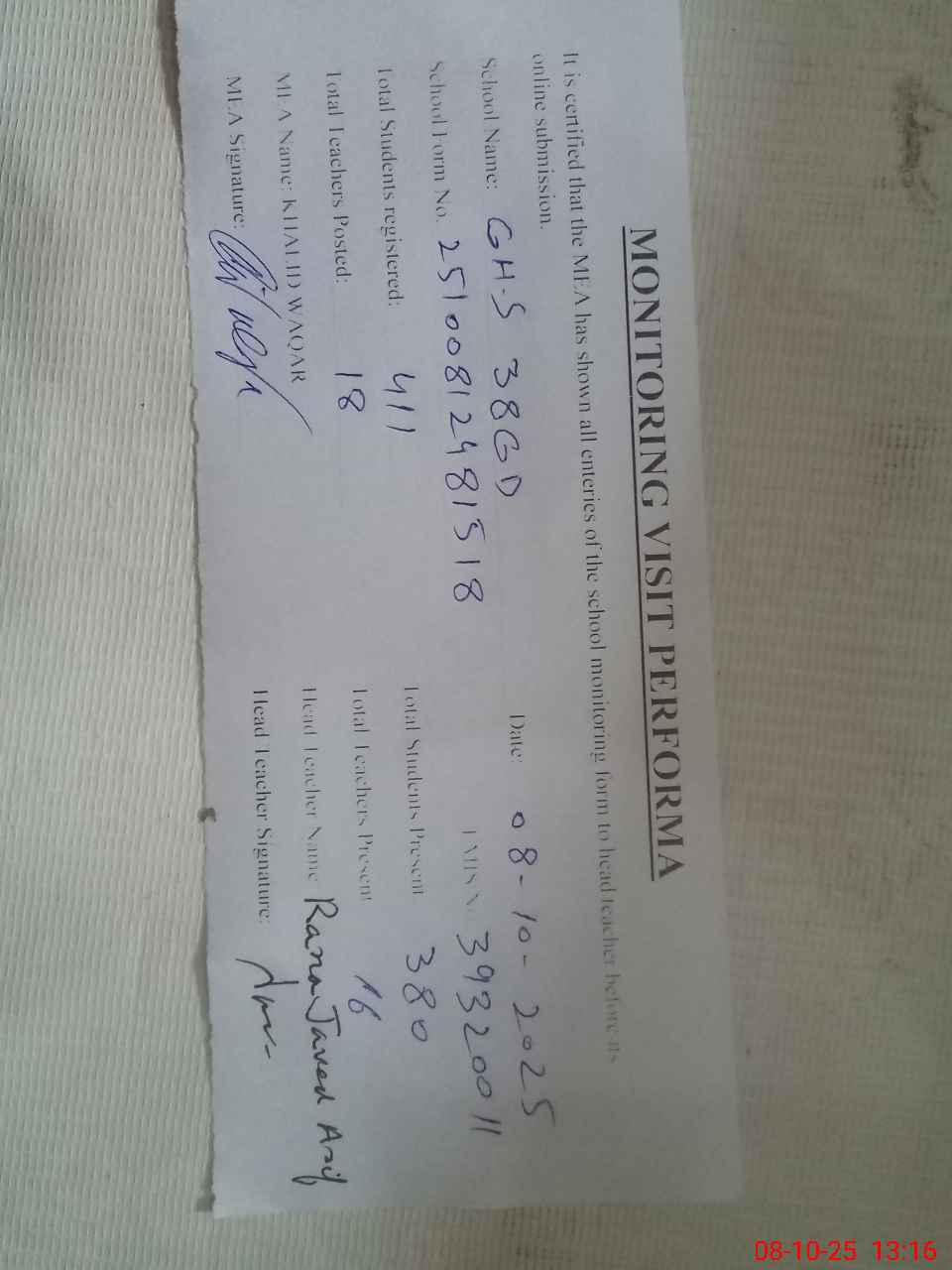 | EMIS Code: 39320011 | Name of School: GHS 38/G.D YOUNG PUR | |||
