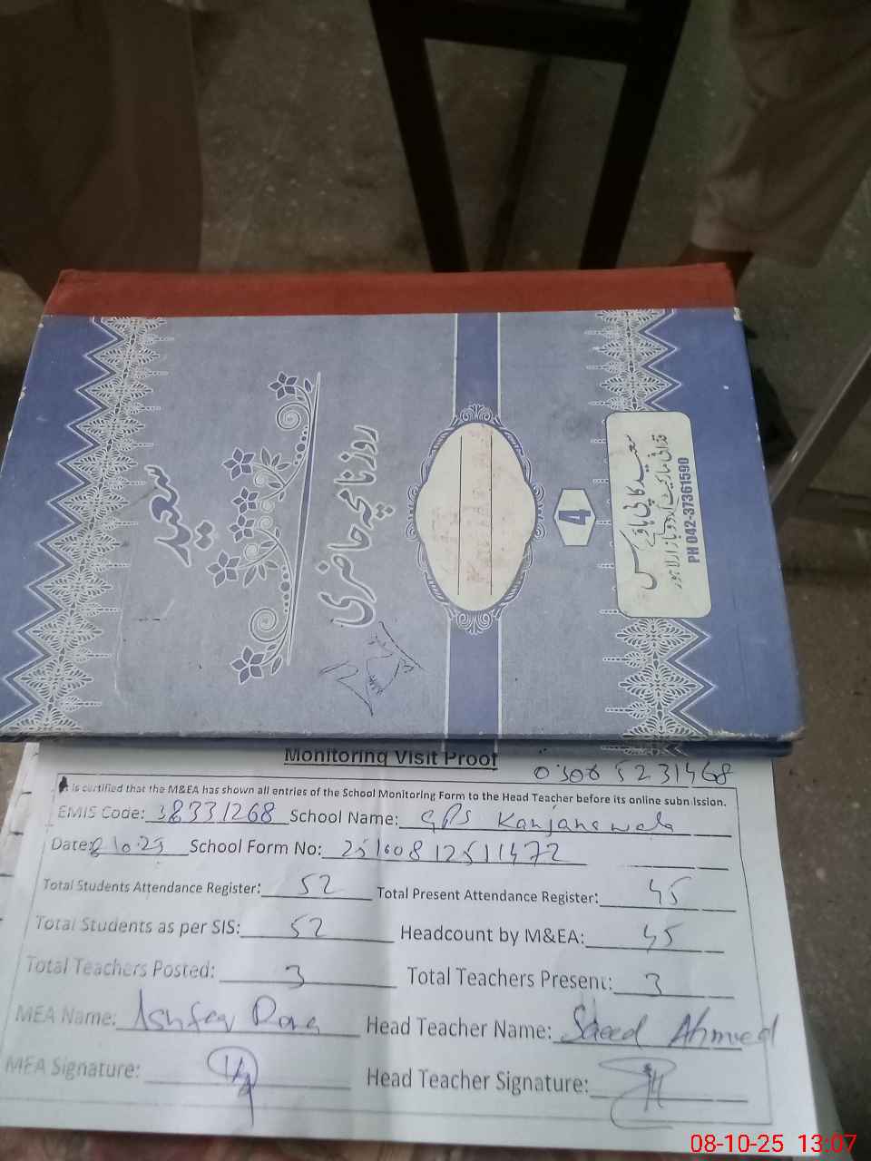 | Attendance Register | Head Teacher | MEA with School | Visit Proof |