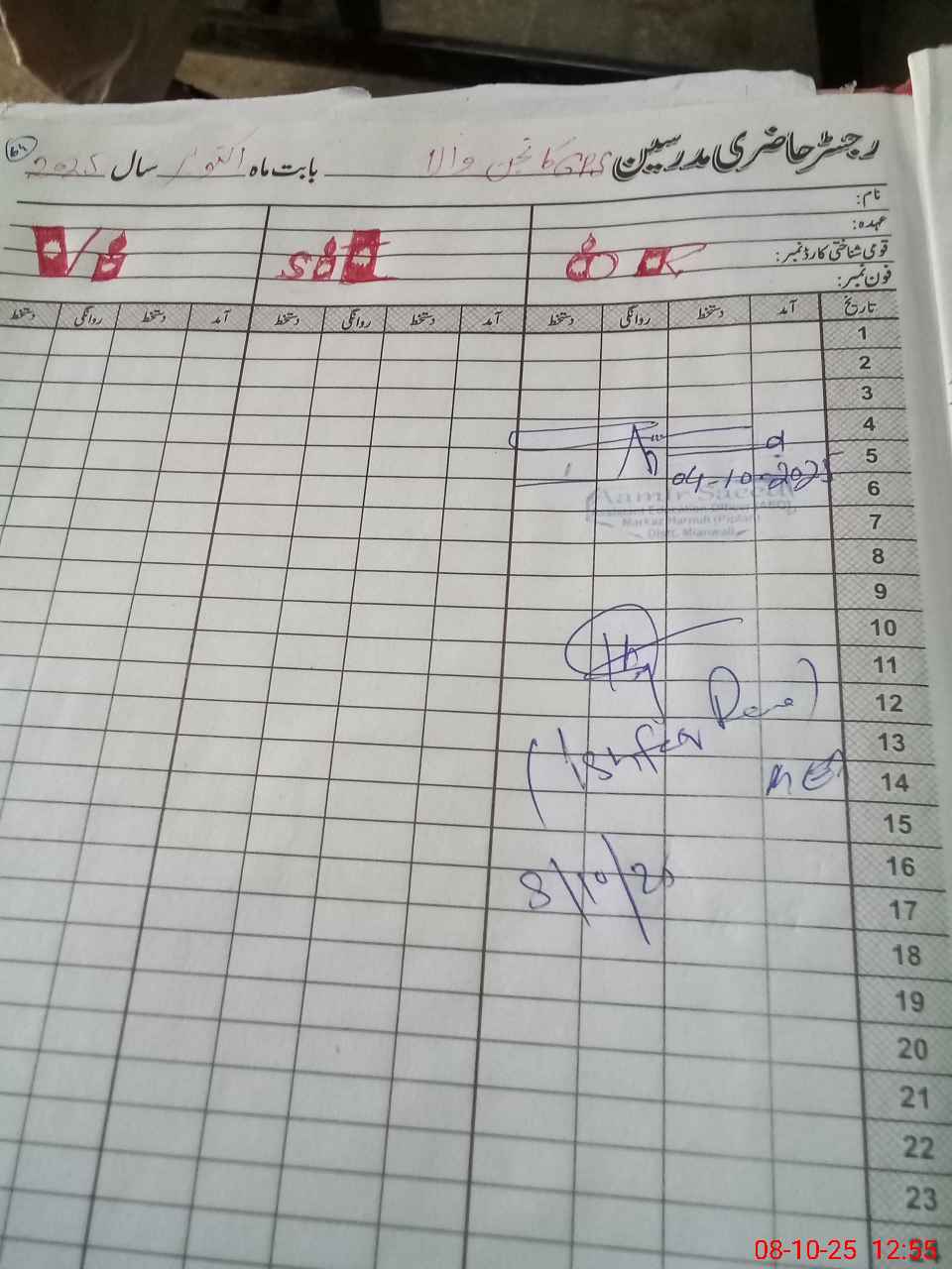 | CNIC | Full Name | Designation | R/C | Absence During Last Calender Month |