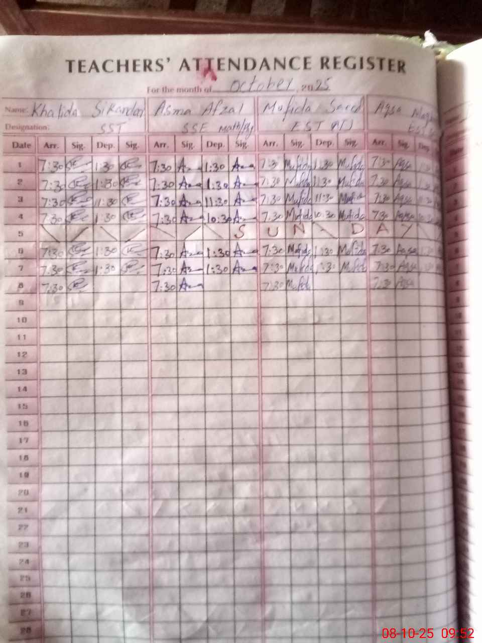 | Name: Kh**** Si**** Designation: (School Headmaster's/Headmistress's) SST (Gen ) Phone/Cell Number: 03**** |