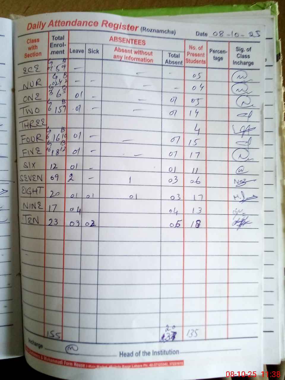 | Remarks (Use Separate Page if Required): Head teacher online leave not shown | |||||