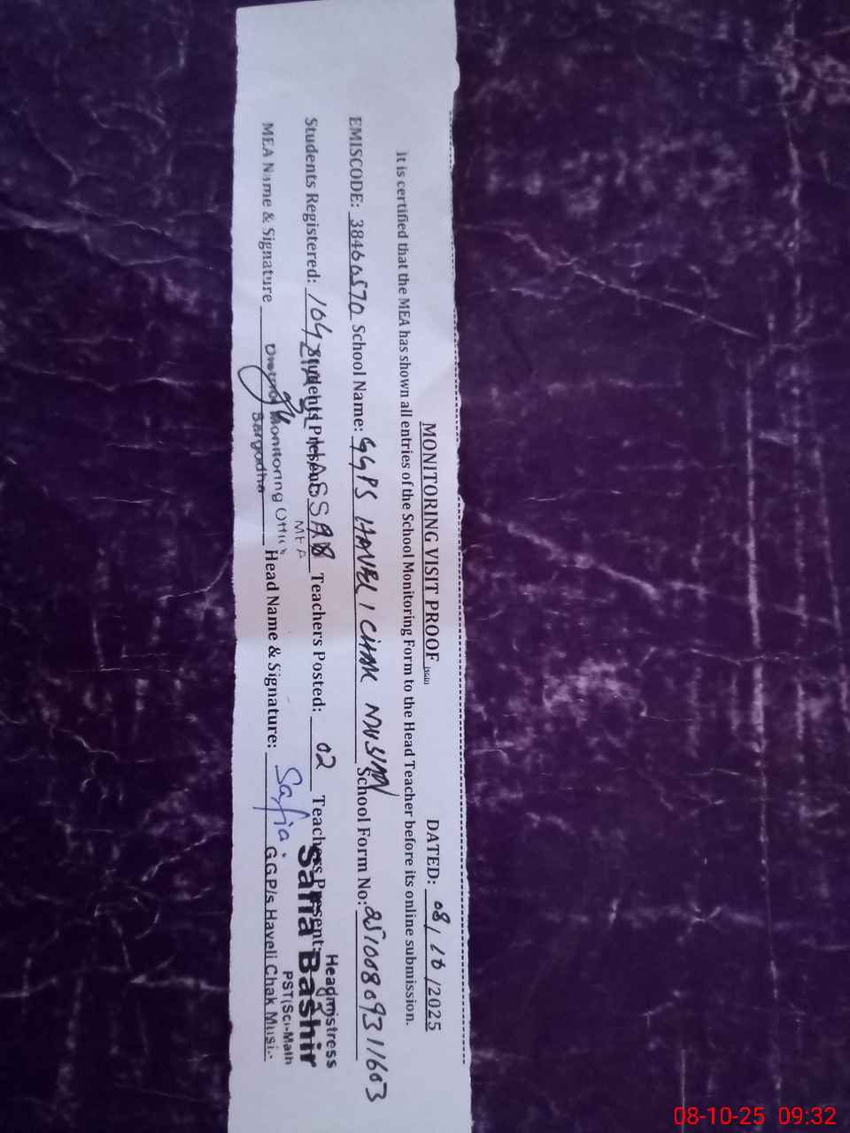| EMIS Code: 38460570 | Name of School: GGPS HAVELI CHAK MUSIAN | |||