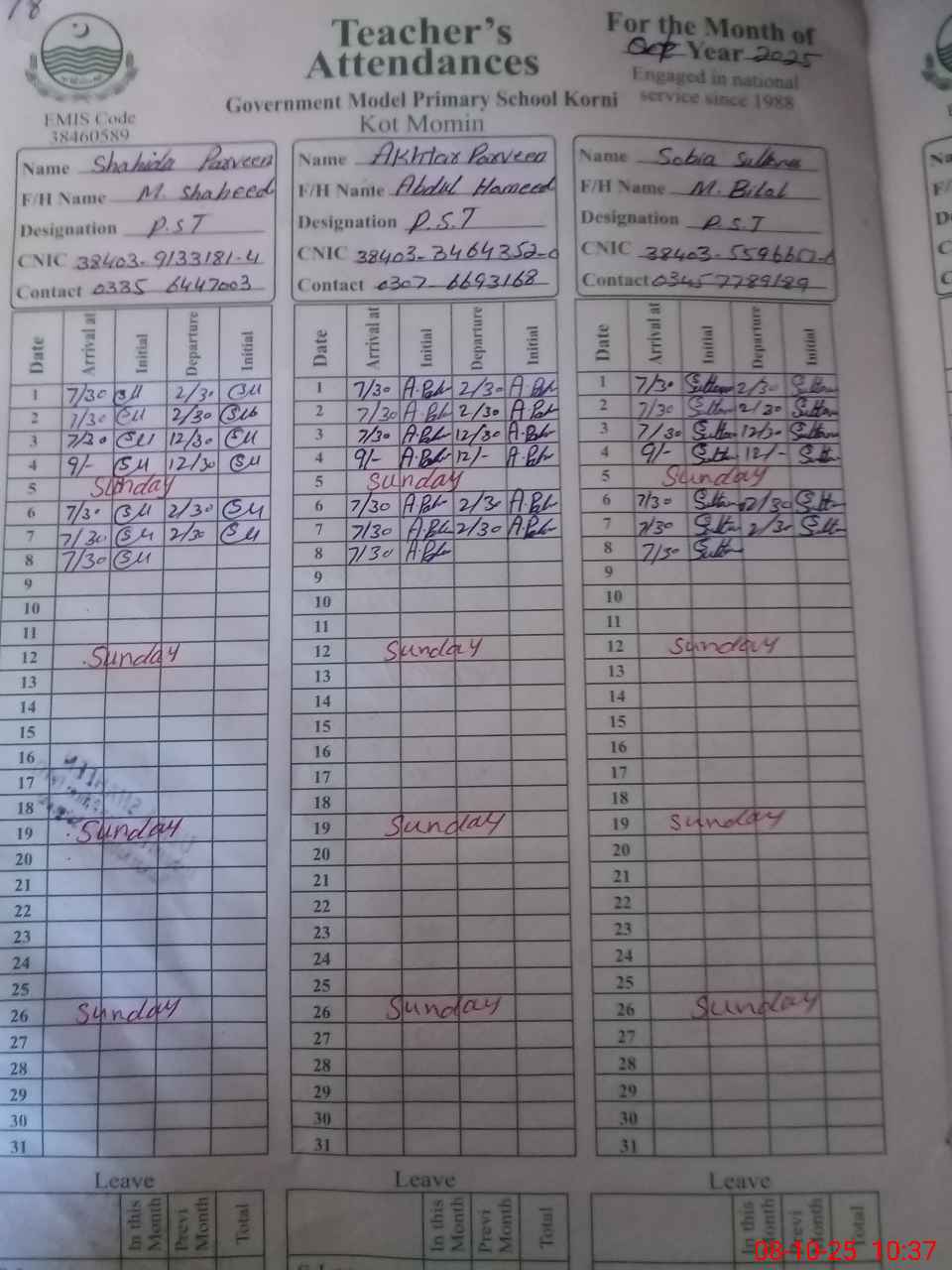 | Name: SH**** PE**** Designation: (School Headmaster's/Headmistress's) PST Phone/Cell Number: 03**** |