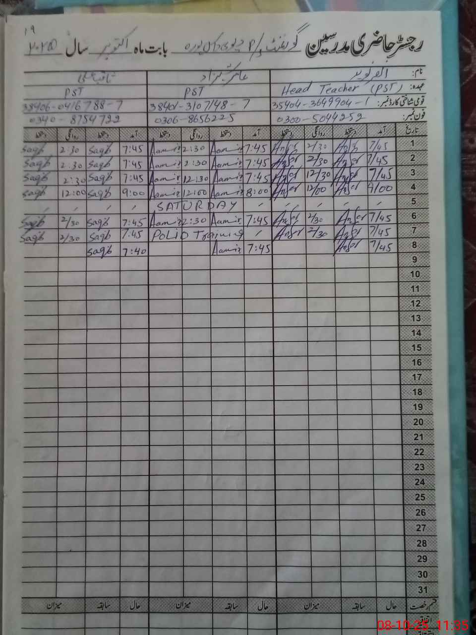 | Name: An**** Na**** Designation: (School Headmaster's/Headmistress's) PST Phone/Cell Number: 03**** |