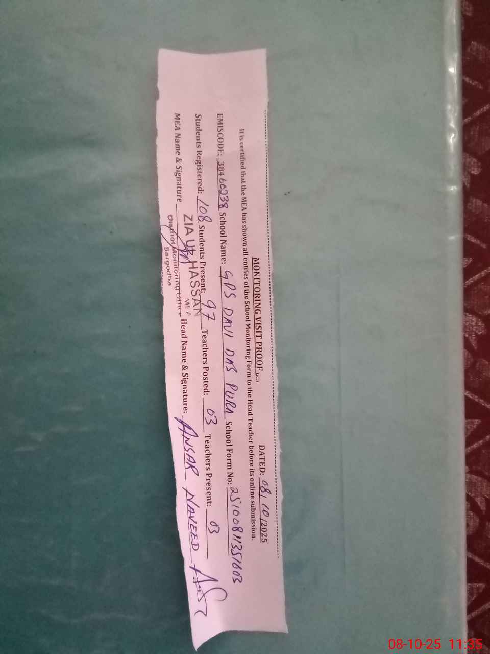 | Certified that this School was Inspected by the Undersigned MEA/DMO Today and the Information Stated Above is as Per Record. | |||||