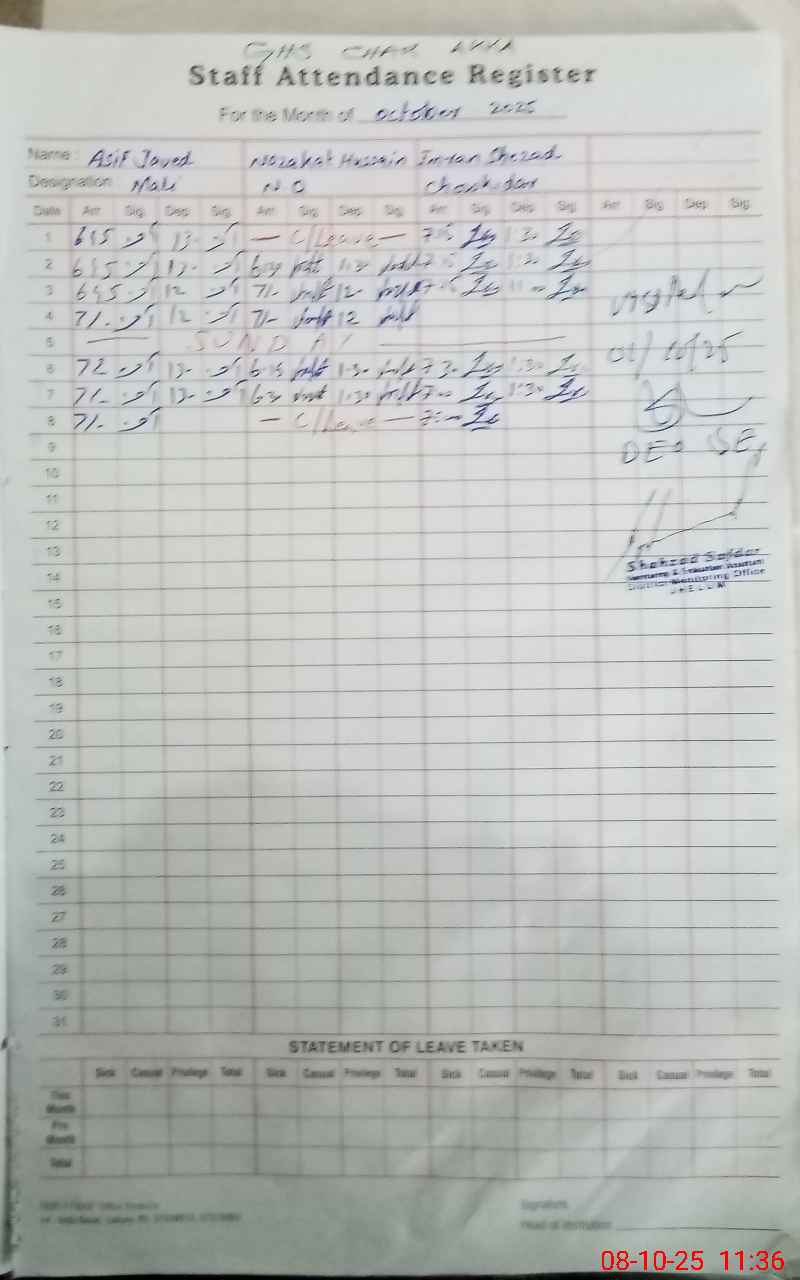 | Name: Fa**** Ta**** Designation: (School Headmaster's/Headmistress's) Headmaster Phone/Cell Number: 03**** |