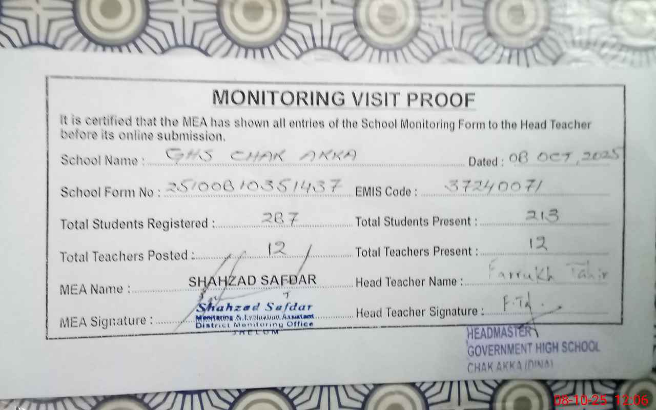 | EMIS Code: 37240071 | Name of School: GHS CHAK AKKA | |||