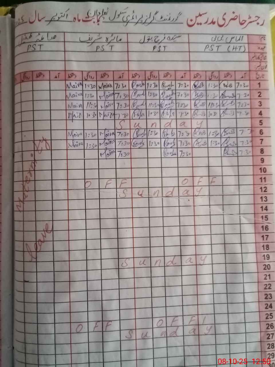 | 35**** | Sa**** Tu**** | PST | Regular | 30 | 0 | 0 | 30 | 0 | 0 | 0 | 0 | 0 | Maternity |
