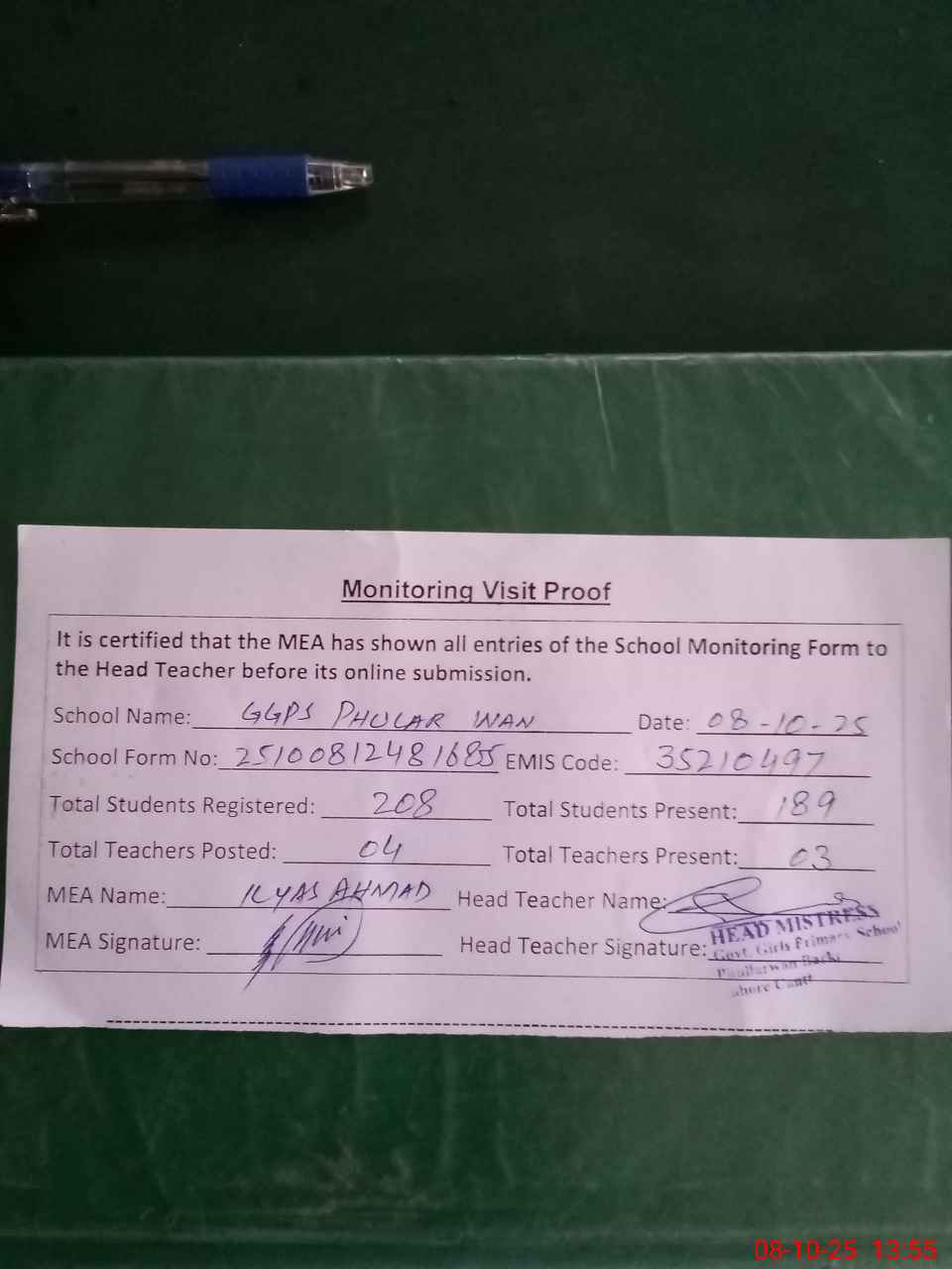 | EMIS Code: 35210497 | Name of School: GGPS PHULAR WAN | |||