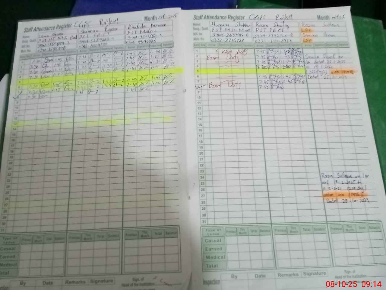 | 34**** | Hu**** Sh**** | PST | Regular | 1 | 6 | 0 | 0 | 0 | 0 | 0 | 0 | 1 | Exam Duty |
