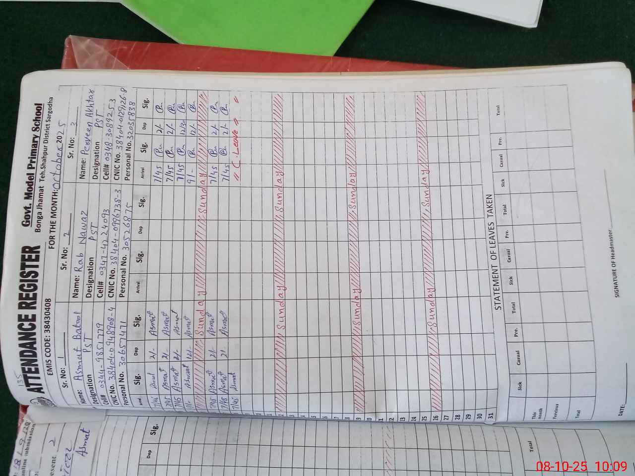 | Name: AS**** BA**** Designation: (School Headmaster's/Headmistress's) PST Phone/Cell Number: 03**** |
