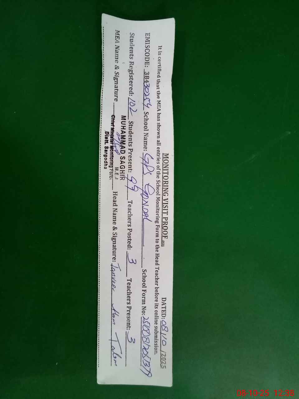 | EMIS Code: 38430254 | Name of School: GPS GONDAL | |||